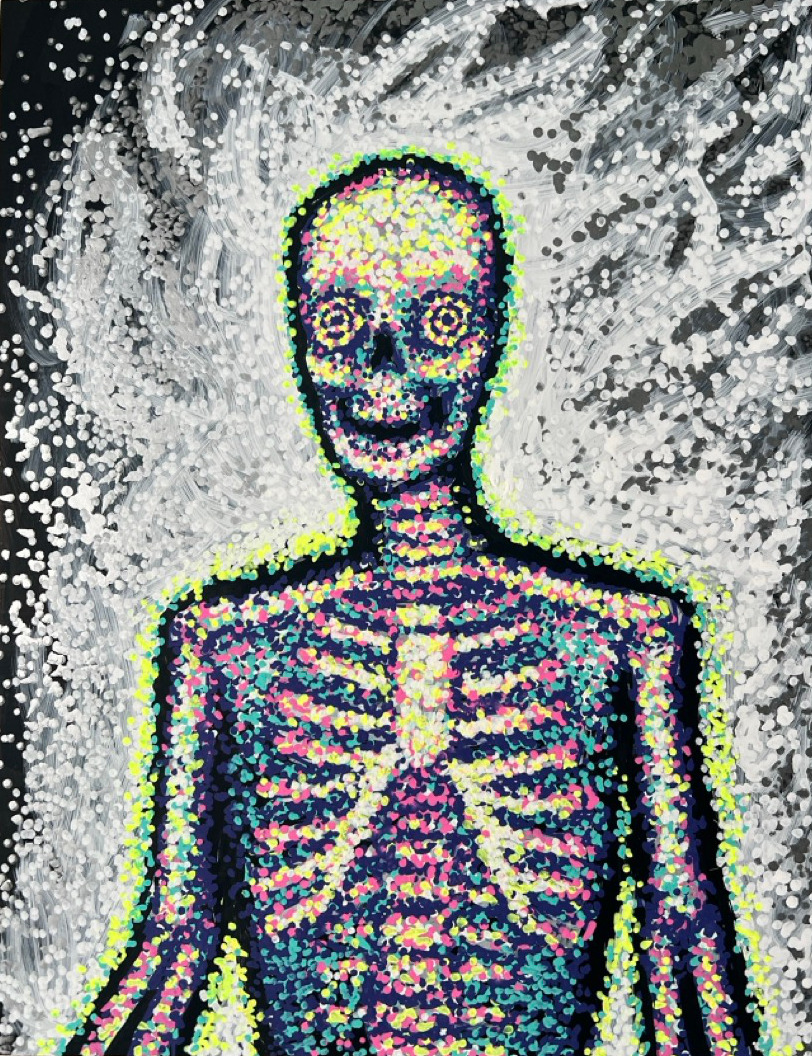 Outside of therapy, I've been connecting with my parts easily when moving my body to music. This makes sense from the literature: therapies like movement therapy, EMDR, or some forms of family therapy invoke either bilateral stimulation or some sense of spatial awareness in order to tap deeper into the emotions of the patient. One night not too long ago I couldn't sleep from anxiety, and so rather than trying to wait it out like I normally do, I blasted SOPHIE in my headphones and made a pointillist painting of my anxious part, tapping each dot to the beat. Something cleared inside me as I completed the painting, and I felt better.